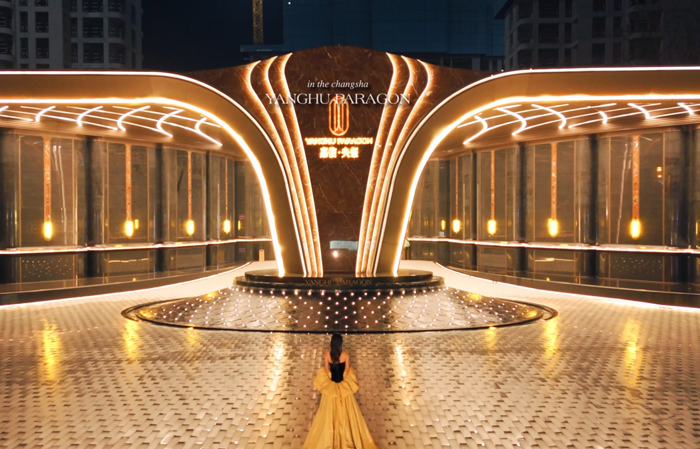回家的路,亦是回归内心的序曲。归家仪式感,始于超百米奢郦门庭,以“央”字为型,西班牙珊瑚红奢石铺就主体,非洲蓝金刚石勾勒轮廓,静水映天,聚气纳瑞。