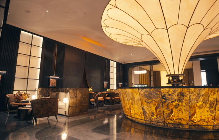 步入室内,百万级别的繁华旋梯婉转而上,以伊朗芬迪白玉通体铺贴,艺术弧线轻盈如诗。二层花穹水吧静谧雅致,透光云石台面流转光影,穹顶绵延,流光里自成圈层静雅社交场。此刻,石为骨,光为韵,一场关于奢雅的生活艺术,悄然启幕。