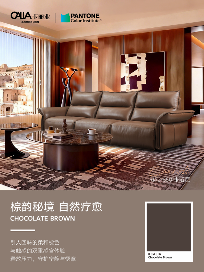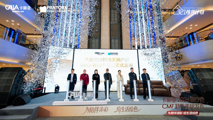 据了解,本次第五届321陪伴计划,卡丽亚继续携手全球色彩权威PANTONE色彩研究所,重磅发布2026年度流行色,多款联合新品惊艳亮相。从PANTONE色彩研究所2026年度流行色暖调可可棕的温润醇厚,到至黑至简的高级质感,卡丽亚将色彩美学融入沙发每一处细节。