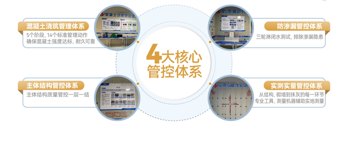 在发布会现场,长沙润府项目总经理于瀚驰详细解读了长沙润府(润玺组团)的工程管理体系——包括5大核心建筑工艺(卫生间防漏、地面找平、墙面防开裂、墙地面平整、墙面保温)以及4大管控体系(混凝土浇筑管控、主体结构管控、防渗漏管控、实测实量管控)。