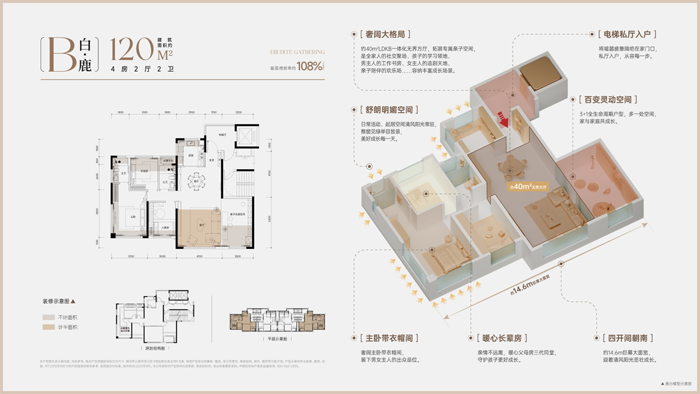 项目秉承新规设计打造低密纯板式社区,建面约100-165㎡户型空间布局科学、功能灵动,得房率最高可达约110%,部分全封窗高颜值立面、270度全景舱视野,好房子值得品质越级检验,全面适配家庭不同阶段的成长需求。同步100㎡、120㎡样板间已同步开放,其开阔的尺度感引发了现场参观者的一致赞誉。结合全系T2纯板、多开间朝南等先进设计,项目在居住舒适度维度上,树立了新的行业标杆。